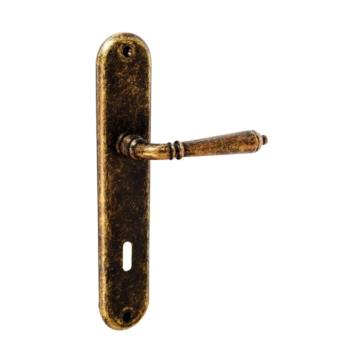 The package includes the knob along with the mouthpieces, the connecting pin and the screws for adjusting the knob to the door