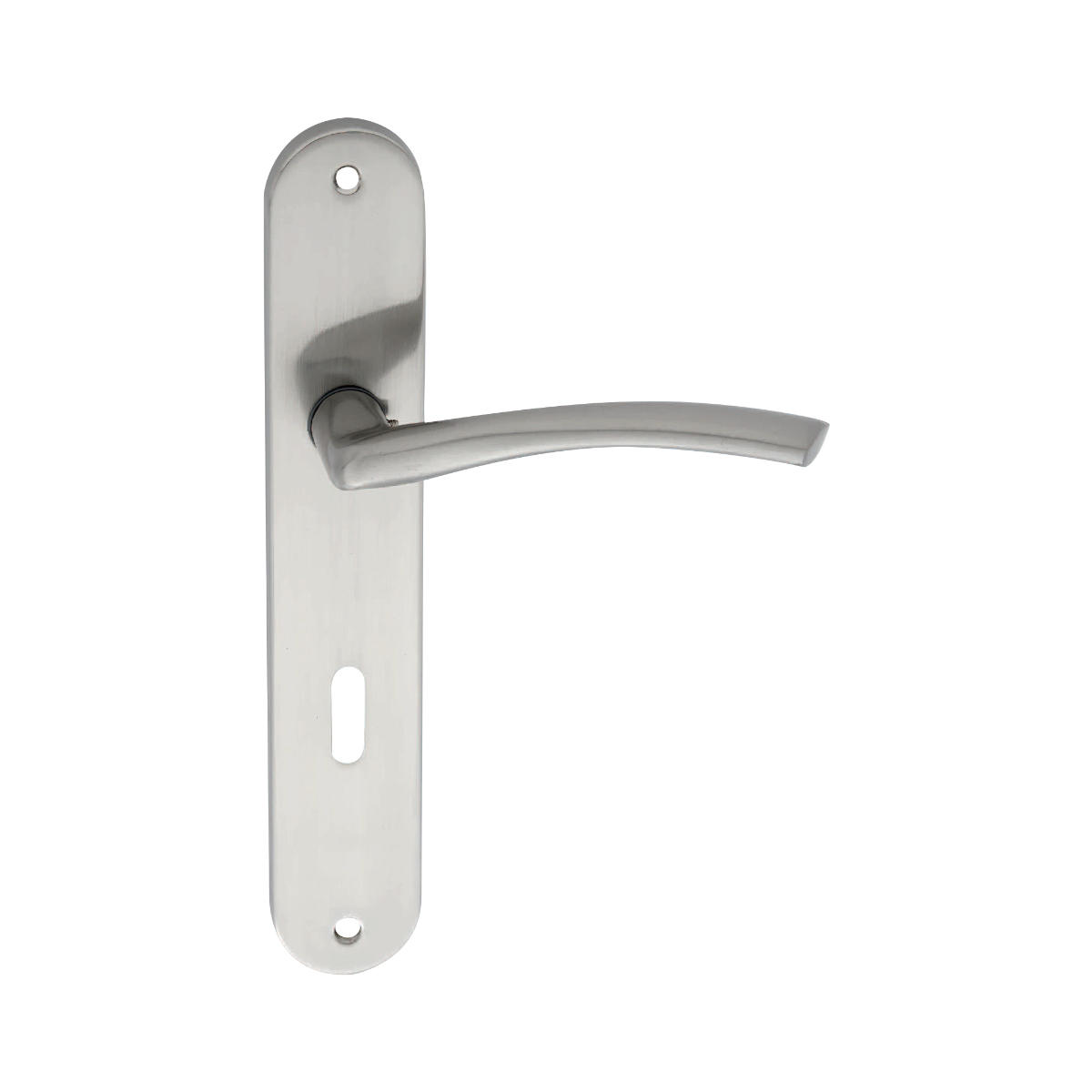 Πόμολο με Πλάκα κατάλληλο για εσωτερική και εξωτερική πόρτα, που διαθέτει κύλινδρο ασφαλείας.